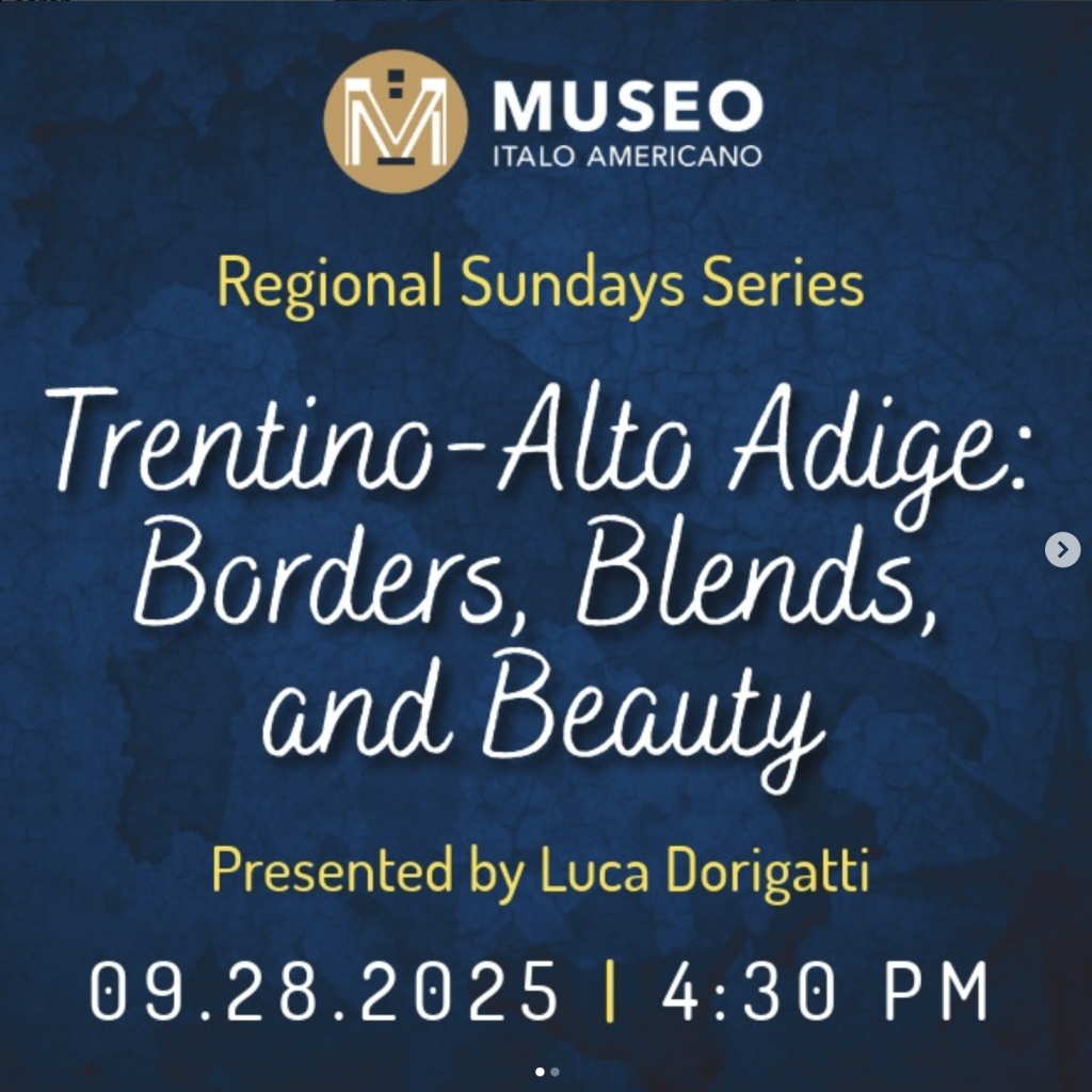 September 28th, 4:30-6:30. Trentino-Alto Adige presentation at the Museo Italo Americano in San Francisco by club president Luca Dorigatti. Click here for RSVP and more info.